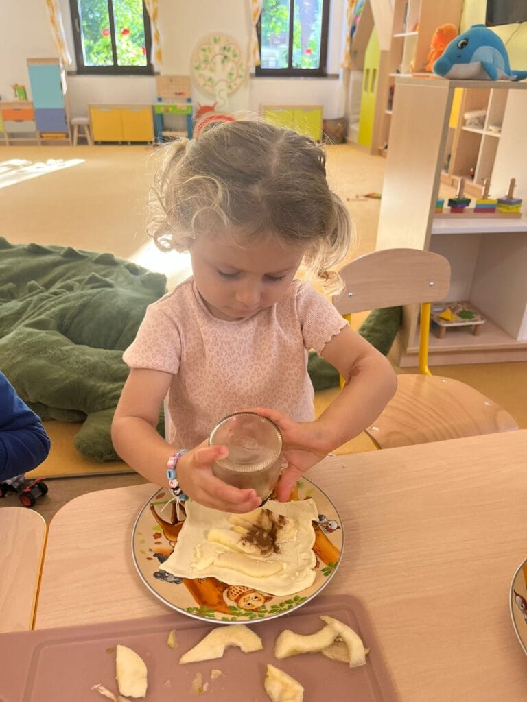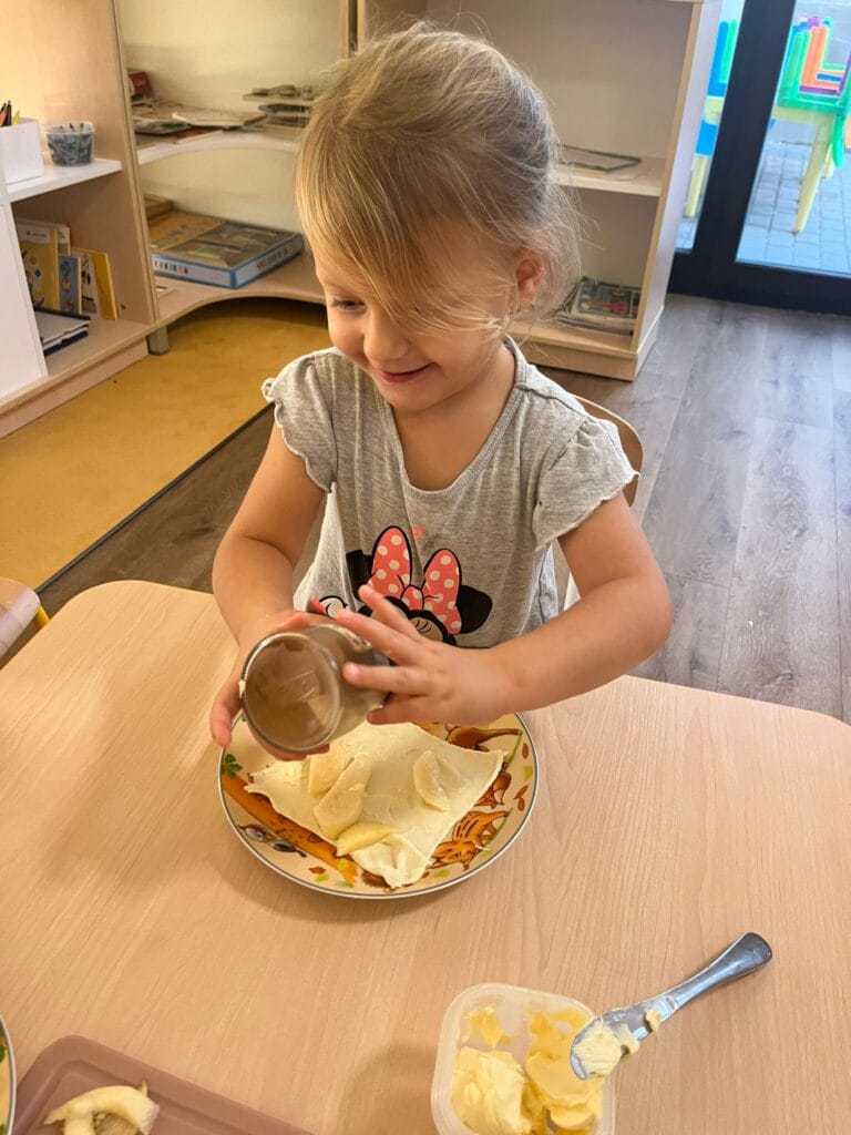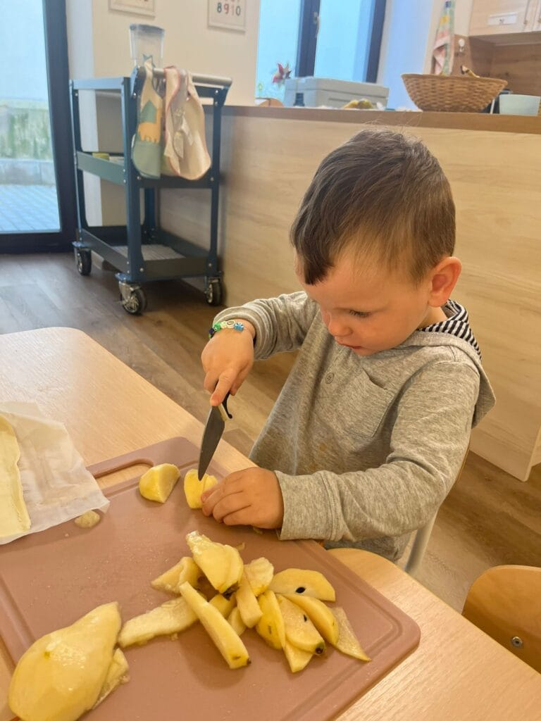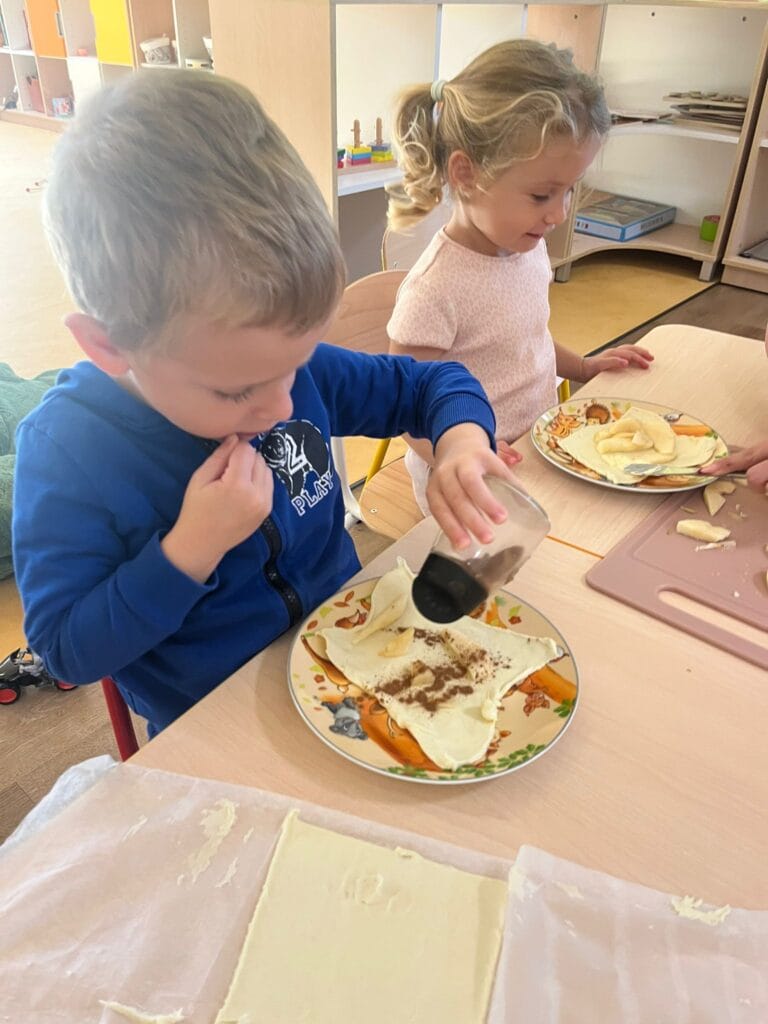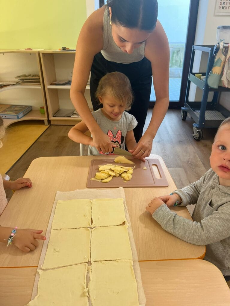 Opět musím poděkovat mamince Haničky, z jejíchž hrušek (ano, paní Kubešová má vlastní ovocný sad) si děti samy upekly výborný závin. U ranních svačin se děti stále více hlásí o možnost přípravy nebo pomoci se servírováním, i v tom je moc rády podporujeme. Pokud by měl někdo tip na dětský recept, podělte se s námi 🙂