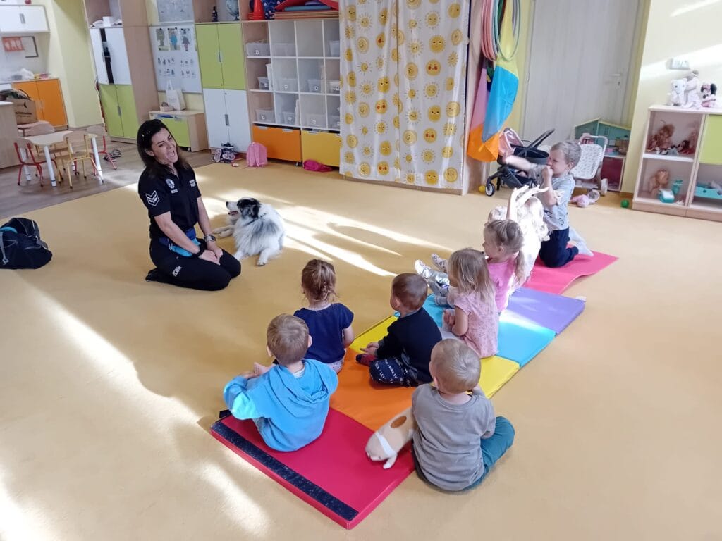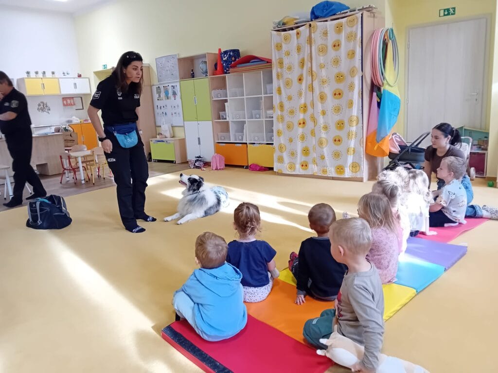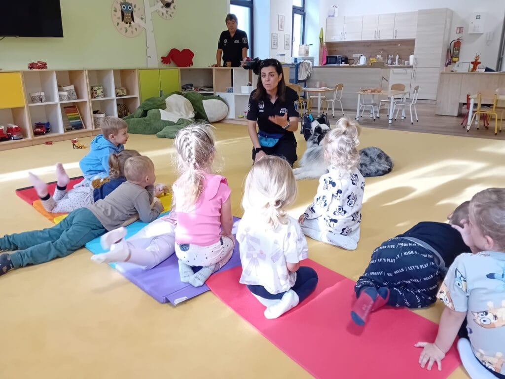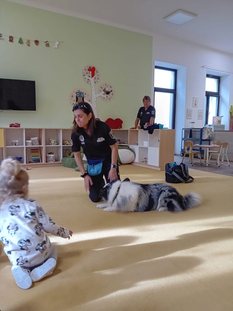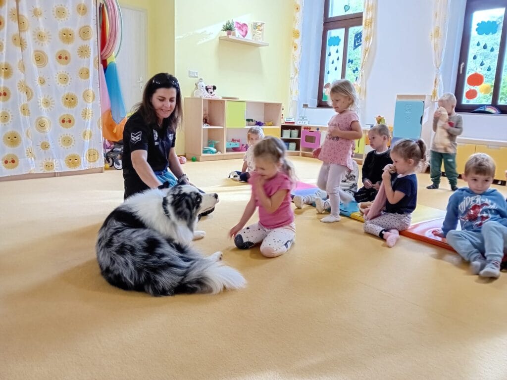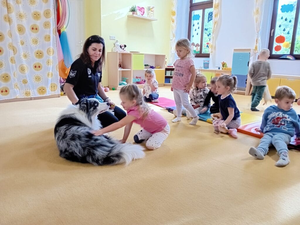 Nechybělo ani zábavné vystoupení a možnost pomazlit se s pejskem. Vaše děti byly úžasné, klidně seděly, pohotově reagovaly a na závěr zarecitovaly básničku, kterou se poslední dny pilně učíme.