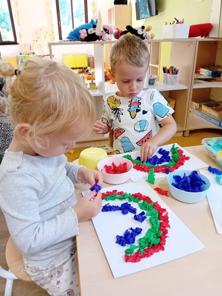 Téma barvy jsme na začátku školního roku zvolili záměrně. Dá se na něj “napasovat” mnoho činností, díky kterým snadno zjistíme, jak na tom jsou děti i v dalších odvětvích a v čem budeme muset zabrat.