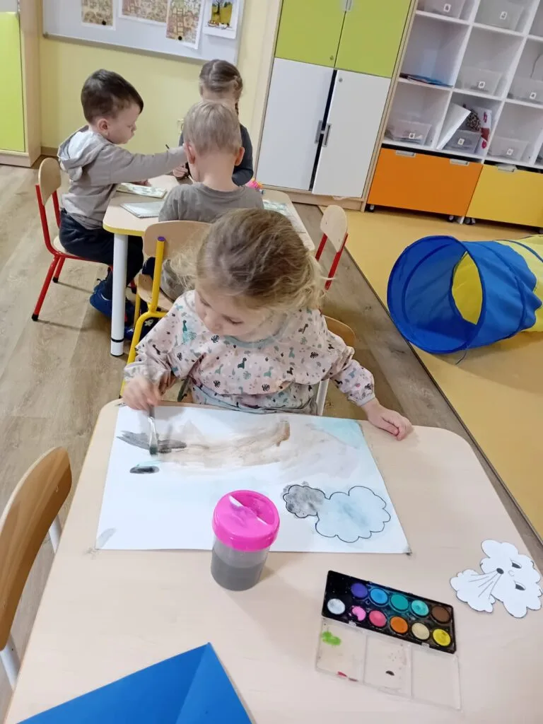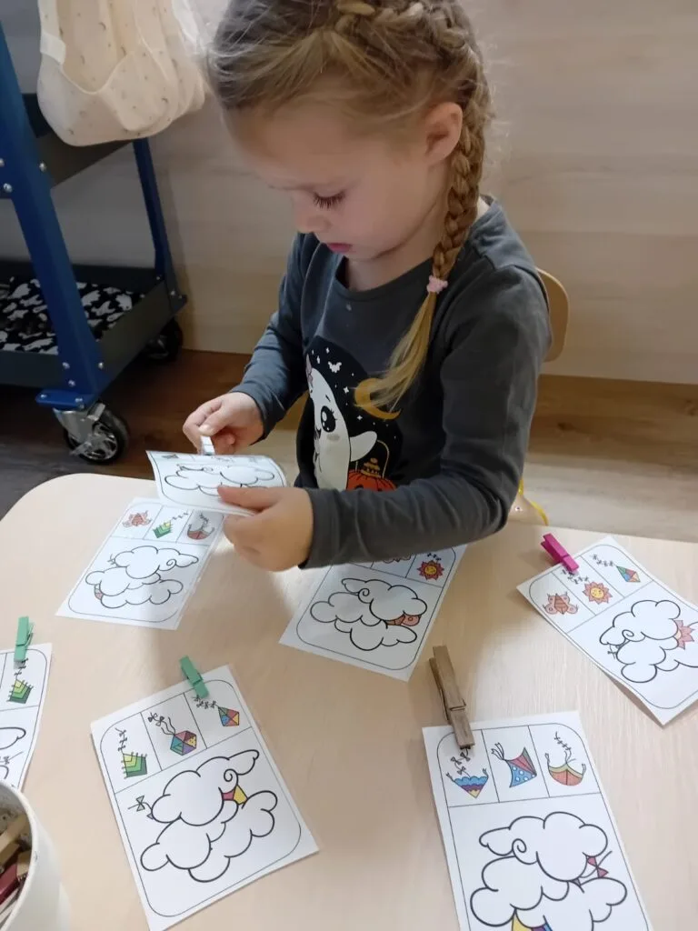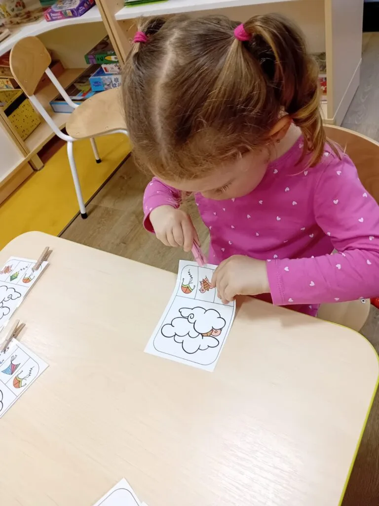 V kroužku jsme probírali počasí, roční období, naučili jsme se říkanku a také jsme se seznámili s hononymy. Děti správně rozlišily, která houba roste v lese a kterou najdeme v koupelně, korunu pro krále nezaměnily s tou z pokladny, draka z pohádky zase porovnaly s tím papírovým. Bohužel nám tento týden nefoukalo na tolik, abychom draky mohli pouštět, ale určitě si to vynahradíme, jakmile bude příležitost.
