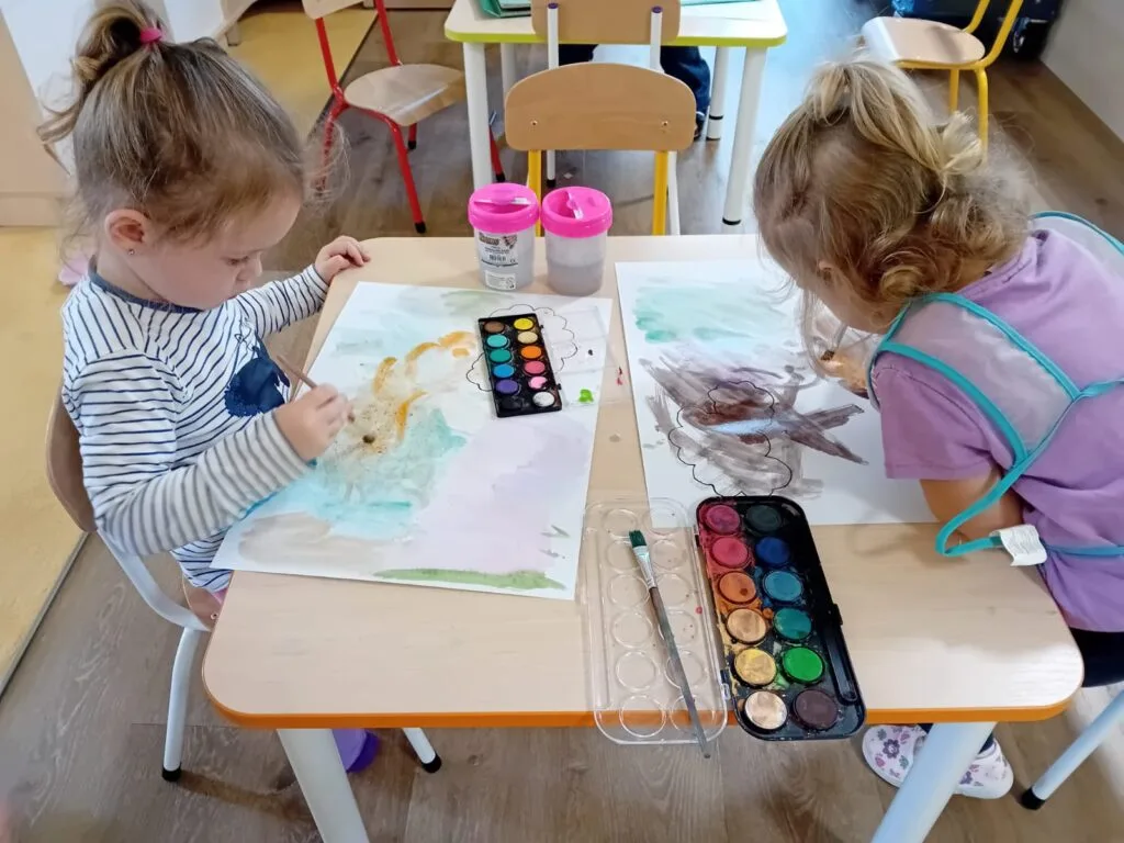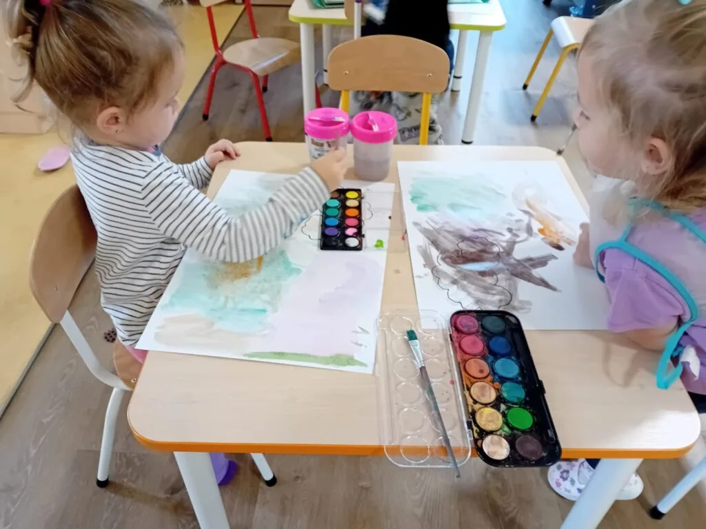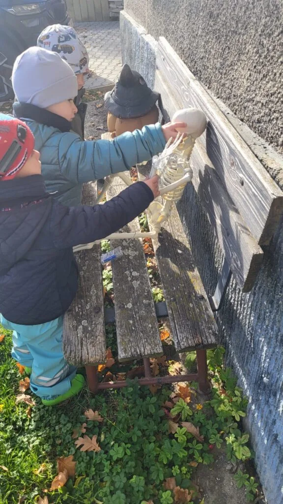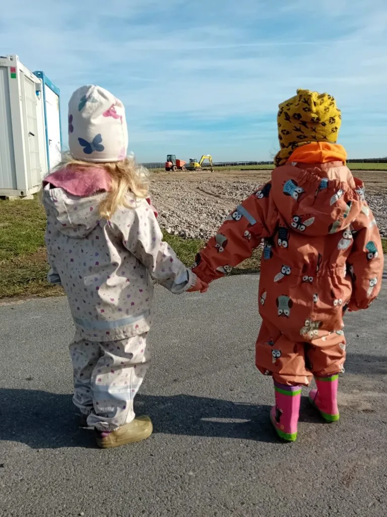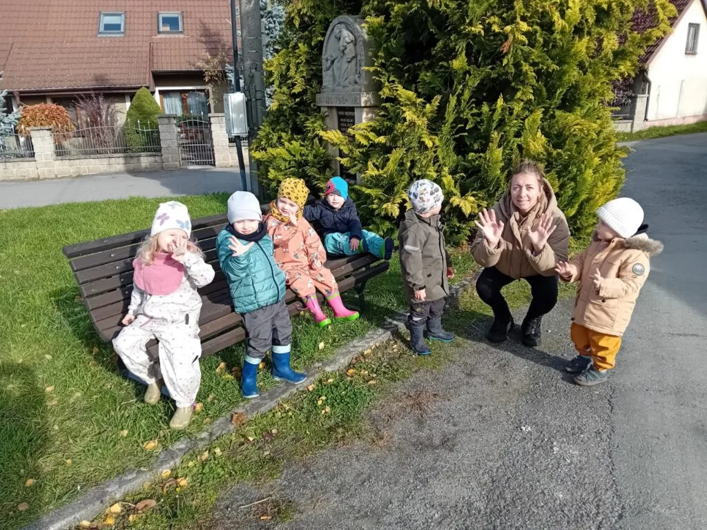 Výtvarné snažení vašich dětí můžete vidět na nástěnce. Venku jsme opět vyrazili na delší procházku, při které děti zvědavě zkoumaly okolí. Měli jsme štěstí na stavební práce, které ve vsi probíhají a děti je rády pozorují.