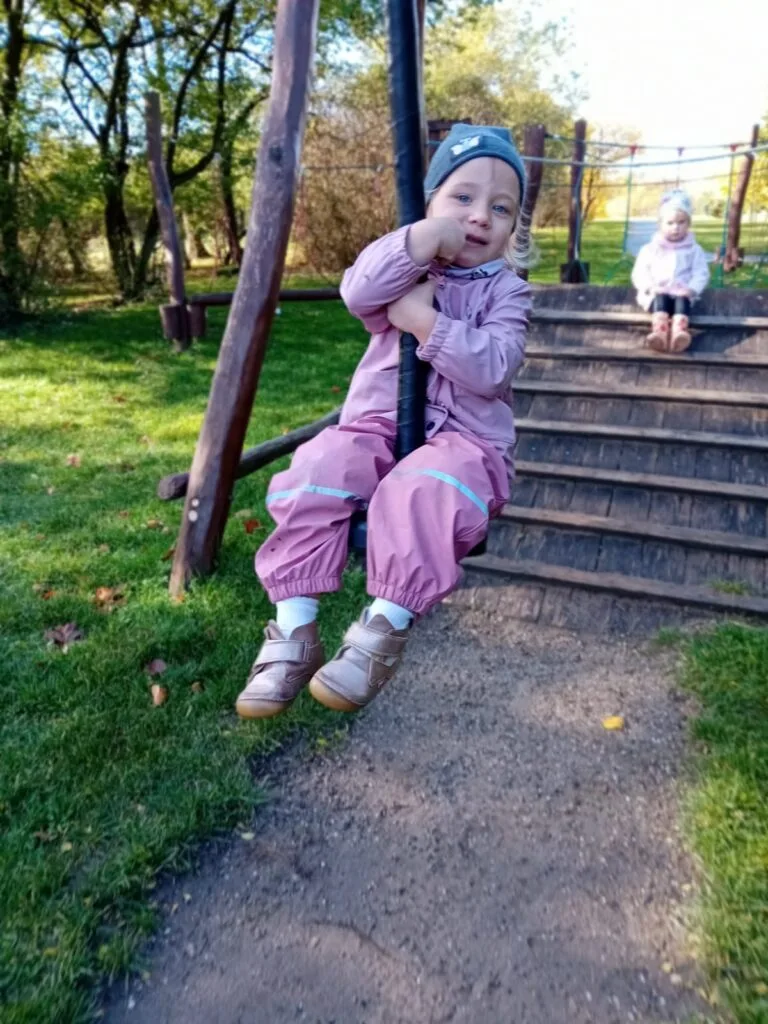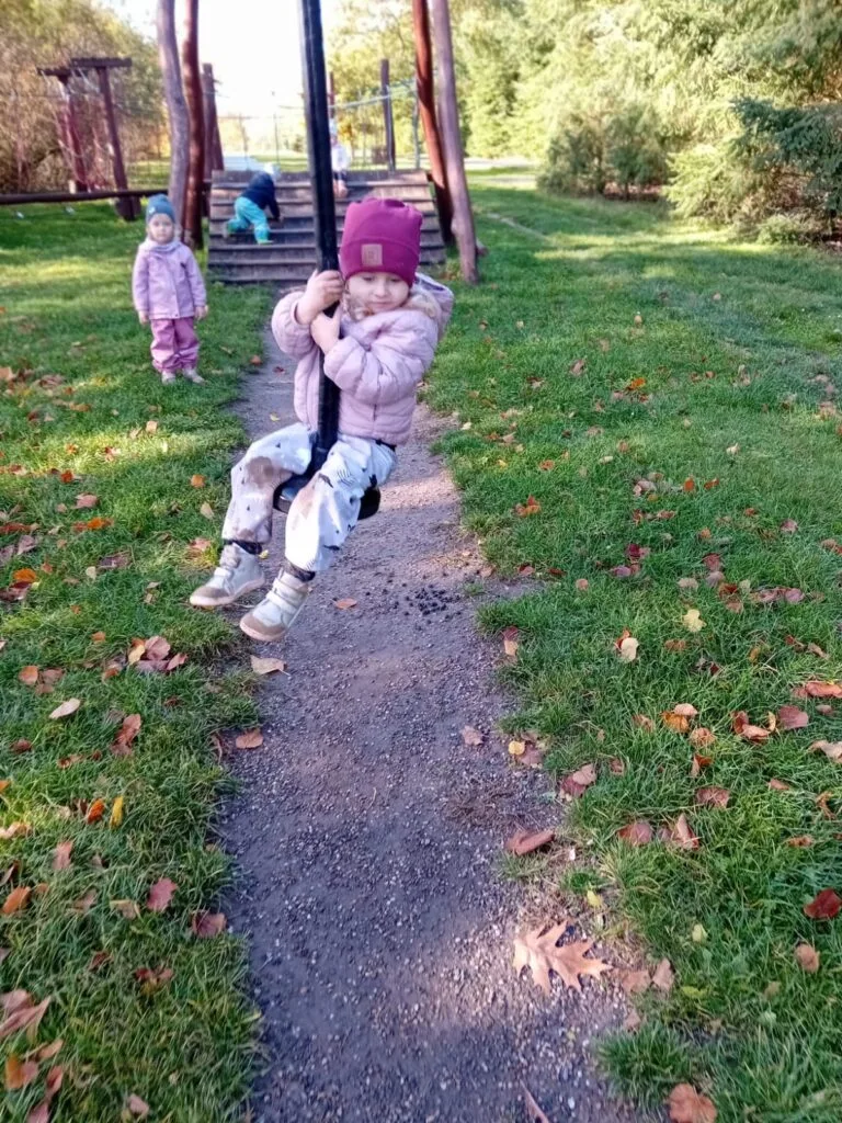 Nechyběl pobyt na hřišti, kde tento týden vedla hra na písku a jízda na lanovce. Už se všichni parádně udrží!
