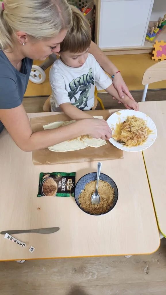 Díky zásobě jablíček od paní Techlovské jsme mohli upéct záviny, které vám snad chutnali, děti si na nich daly opravdu záležet.