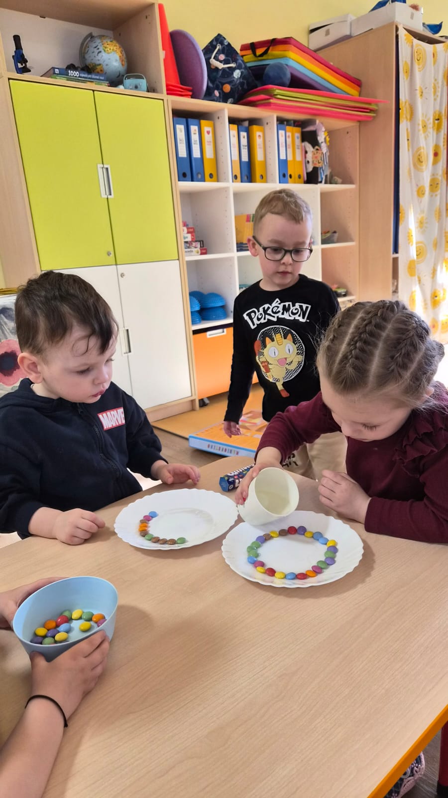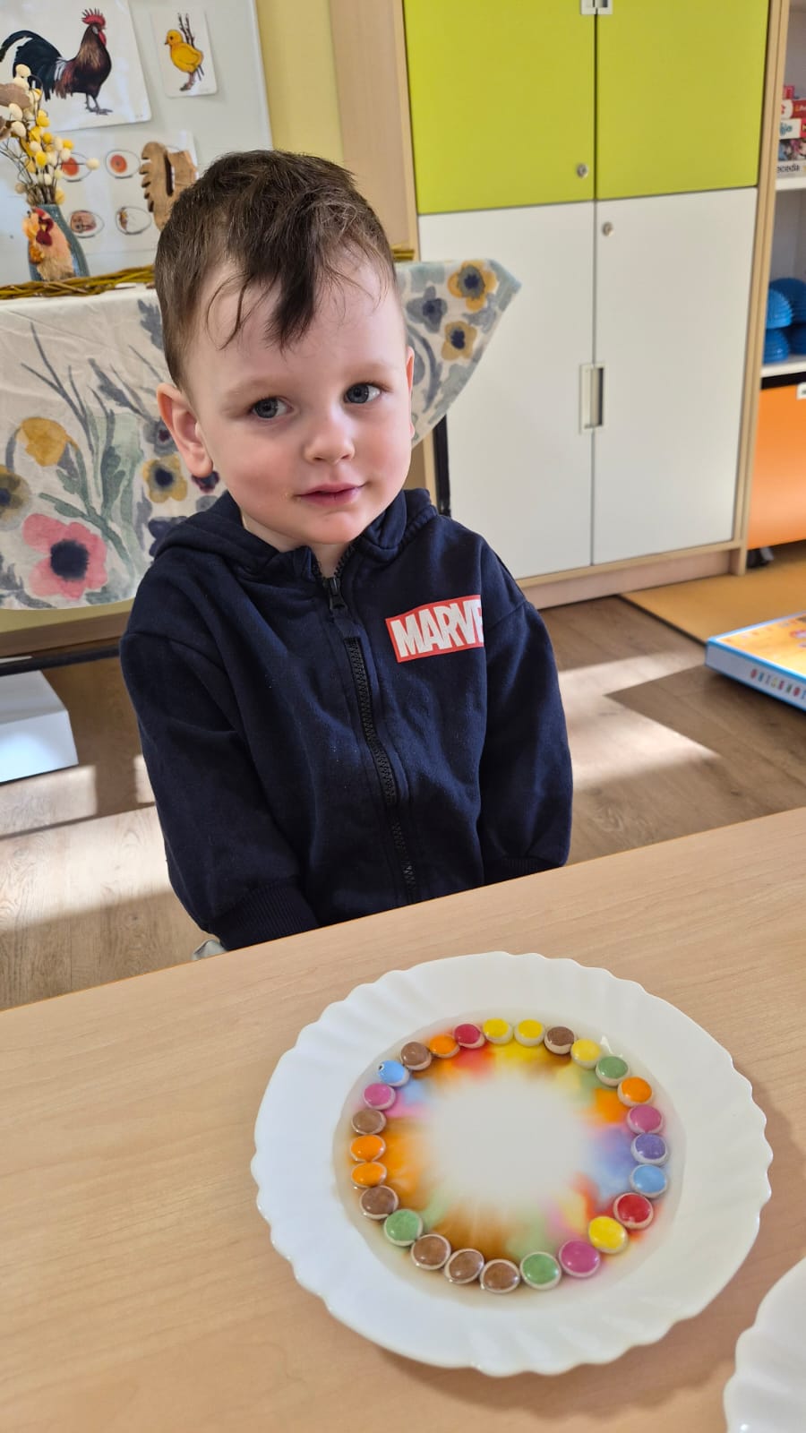 Barvení vajíček v cibulových slupkách bylo vítanou nevšední činností, stejně jako barevný pokus s lentilkami, nebo “vybarvování” kraslic pomocí modelíny.