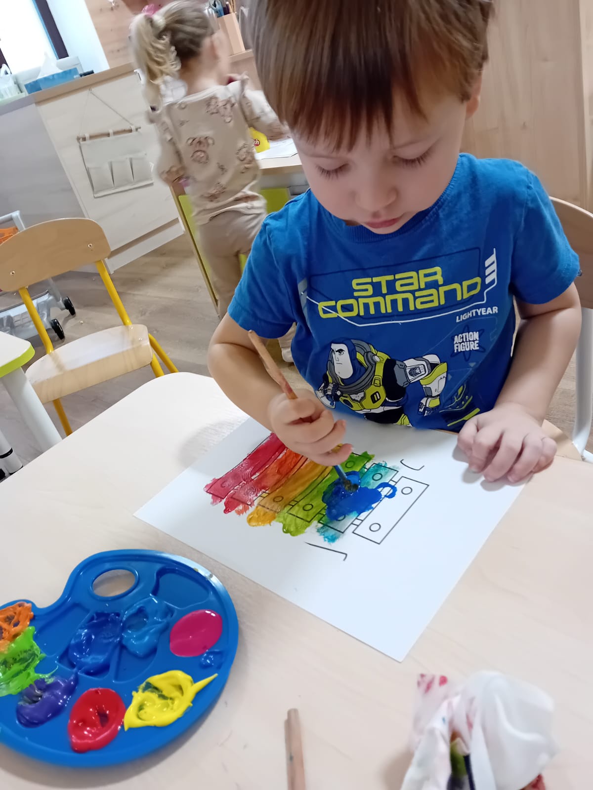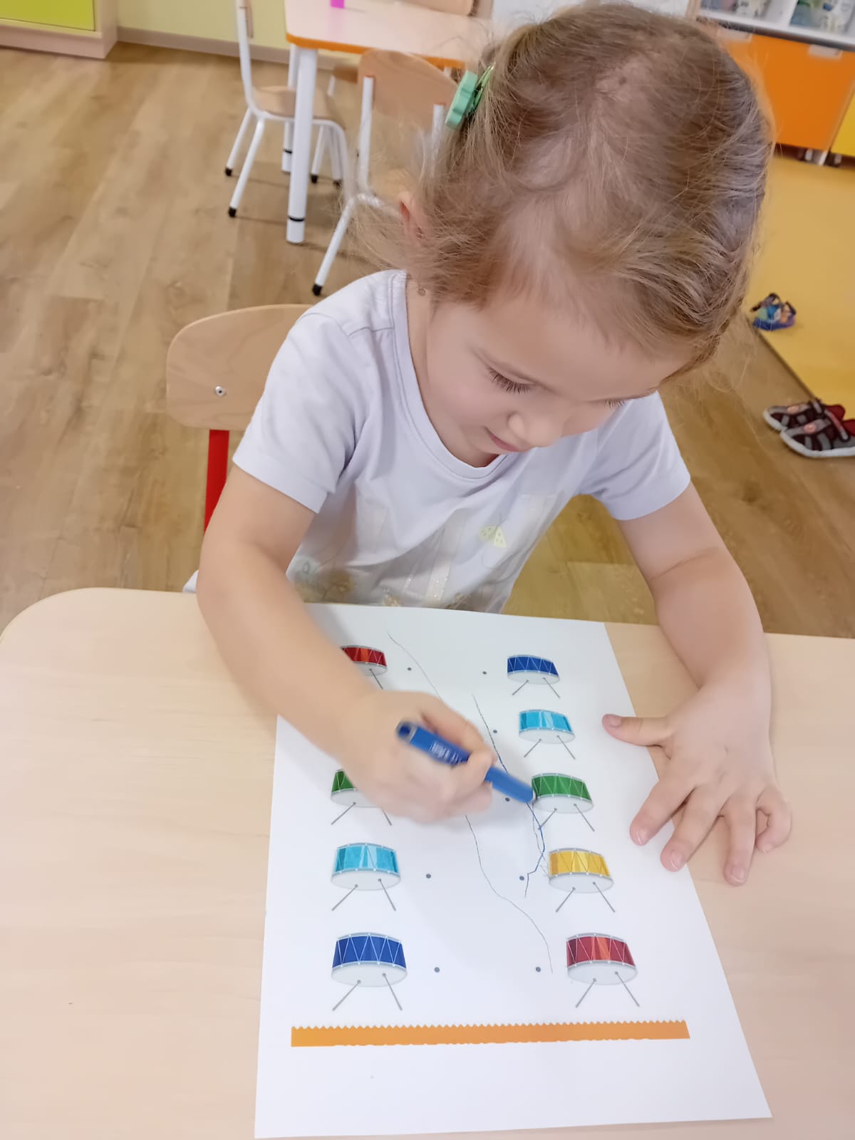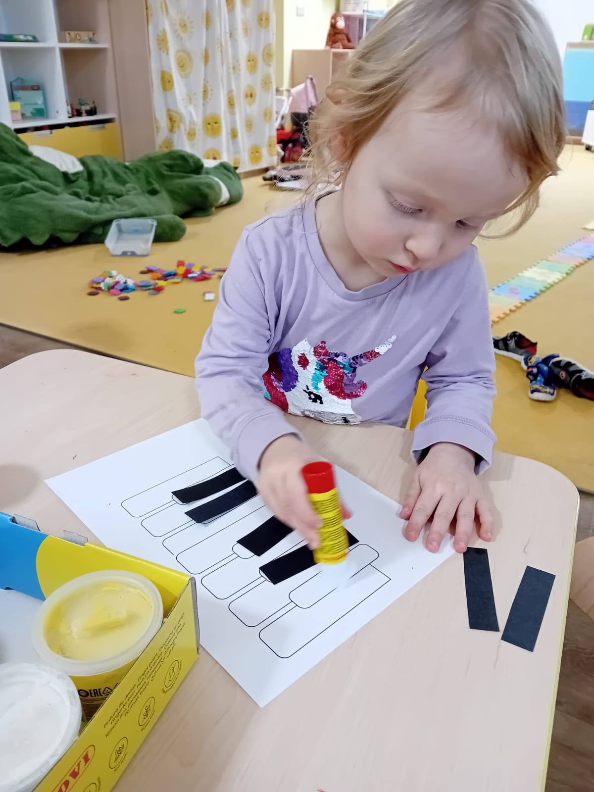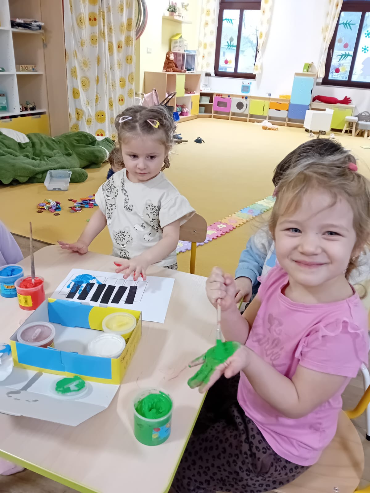 Barvy jsme parádně procvičili při malbě xylofonu. Jemnou motoriku zase při stříhání a modelování.