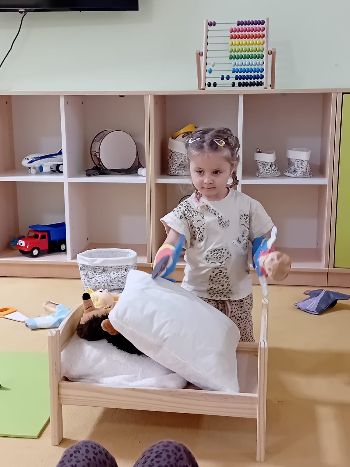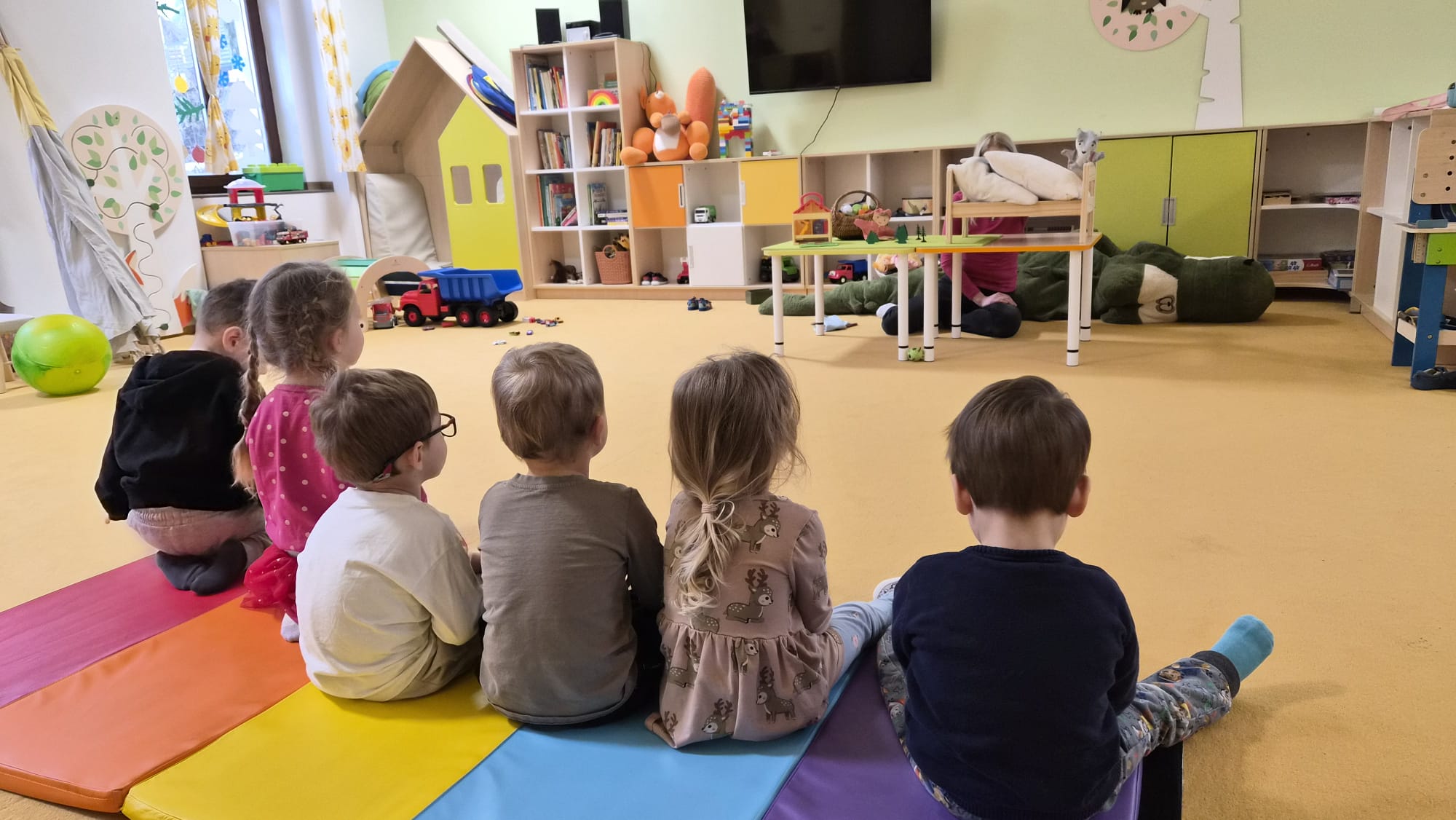 V kroužku vždy začínáme uvítací říkankou “Dobré ráno, dobrý den, dneska máme krásný den, dobré ráno, dobrý den, dneska zlobit nebudem.”