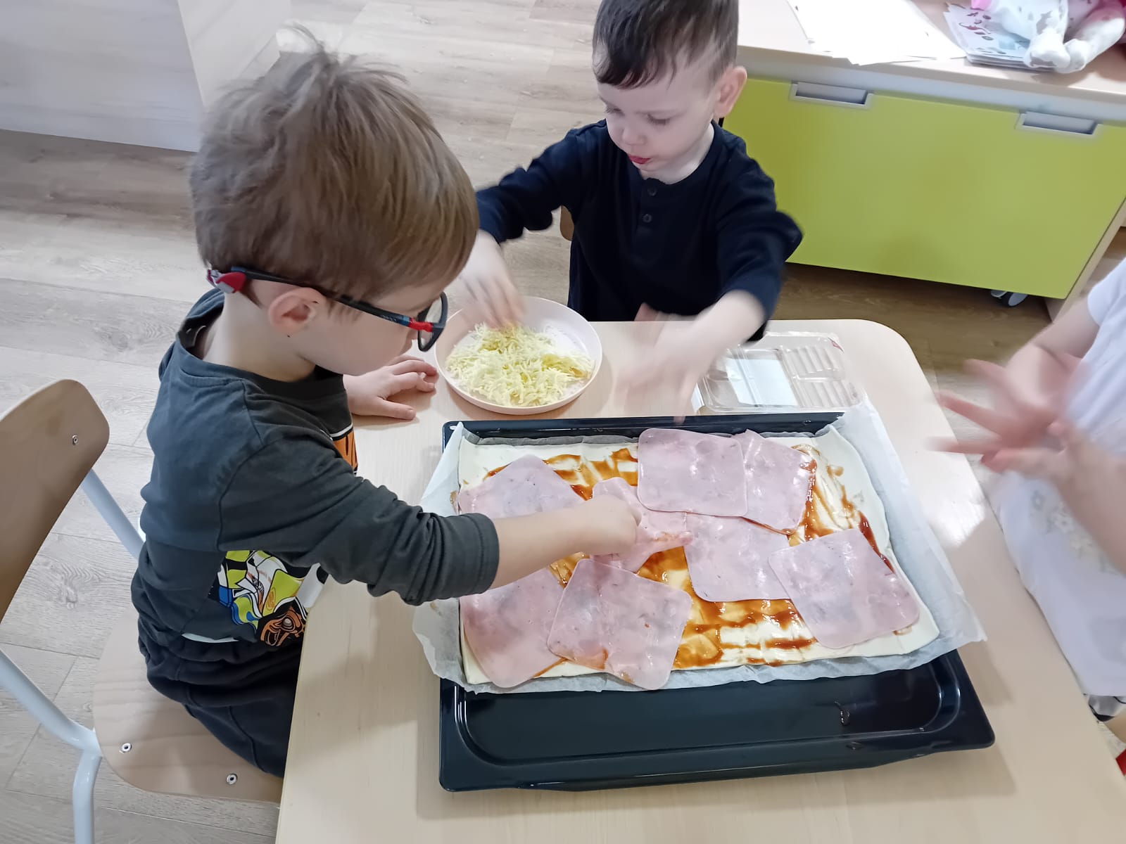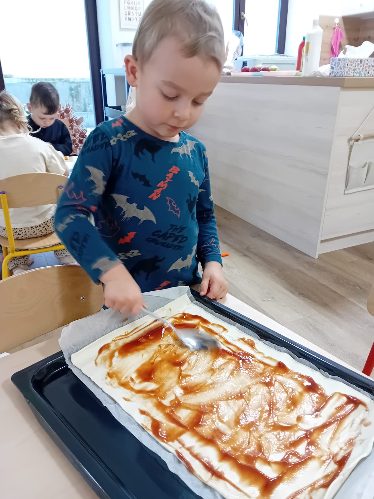 Opět jsme si našli čas i na vaření, tentokrát děti připravily pizzu a jablečno-hruškový závin. Nic nezbylo! 🙂