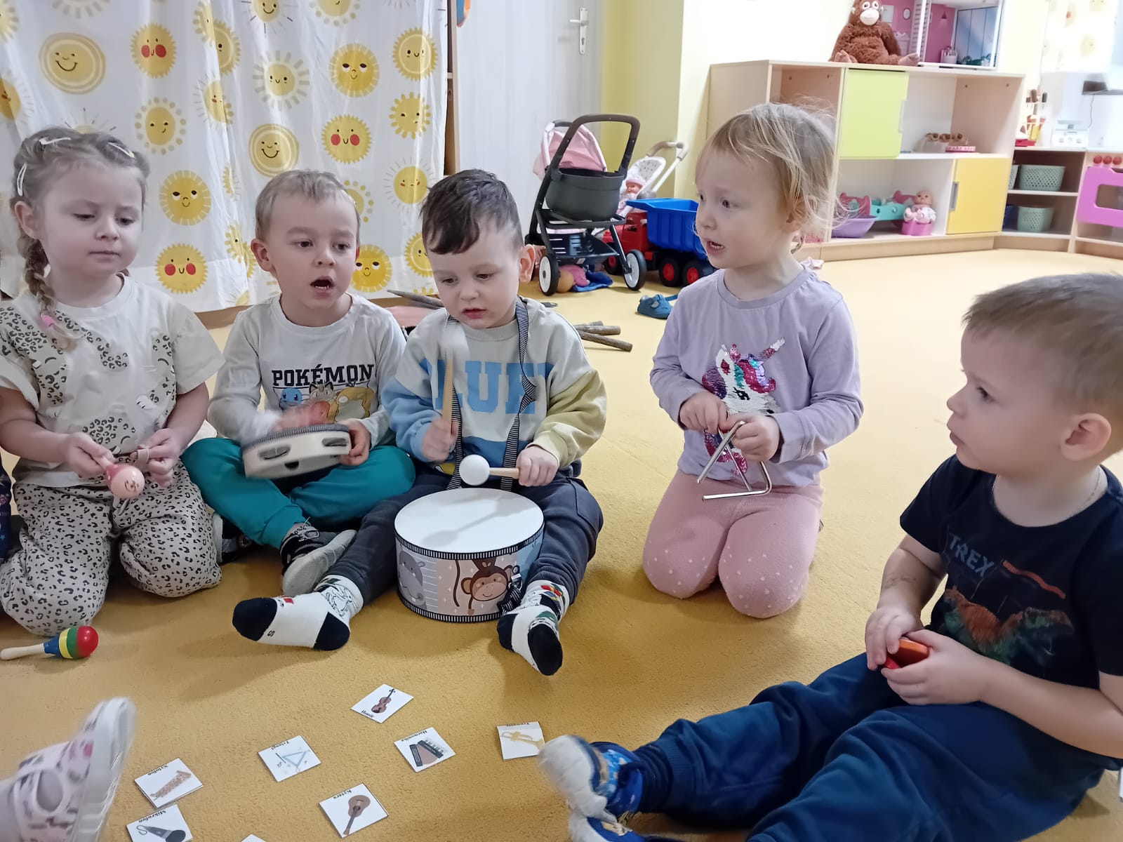 Tentokrát jsme poznávali hudební nástroje. Děti většinu známých správně pojmenovaly. Tamburíně však po vzoru Tondy nikdo neřekl jinak než trampolína :)))