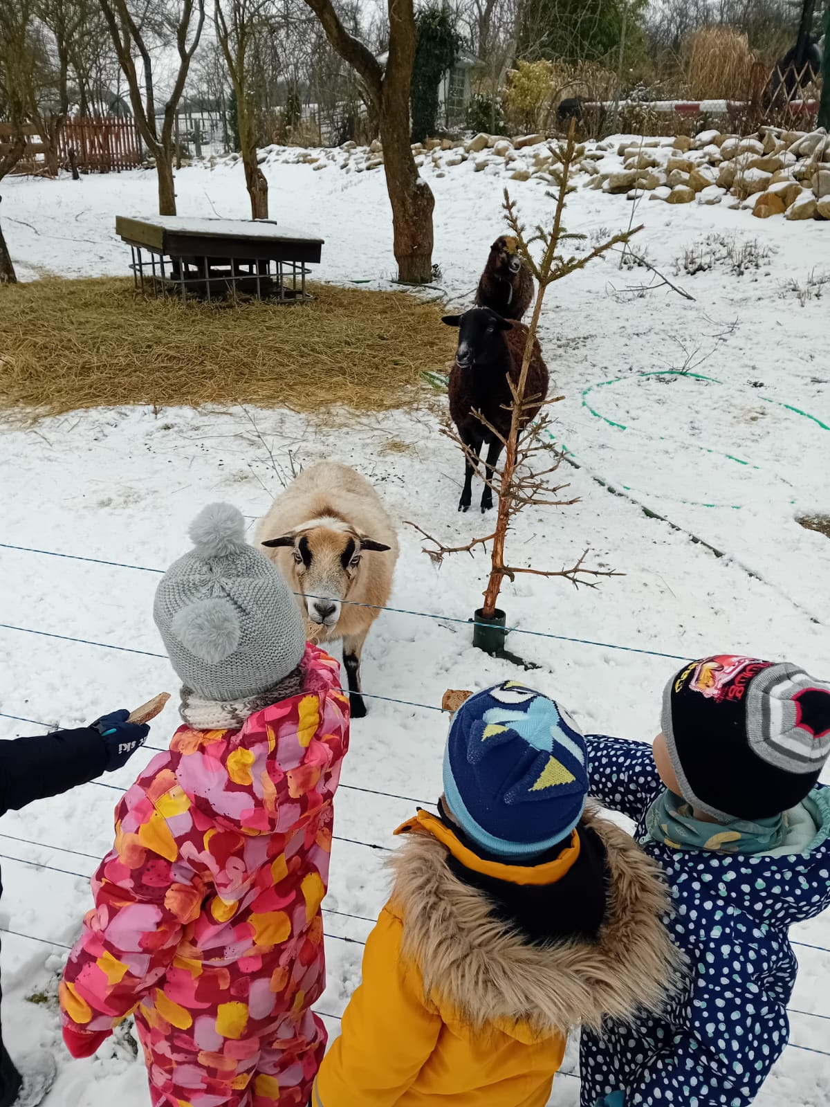 Venku jsme si užili sáňkování, krmení zvířátek nebo procházku po vsi.