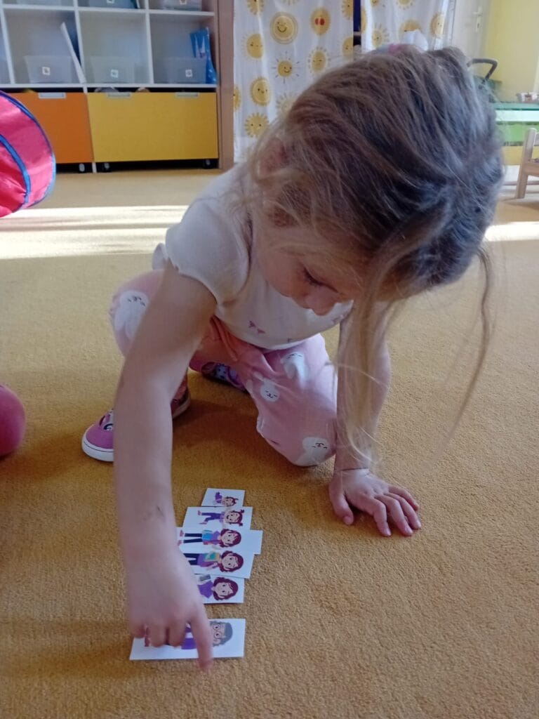 Všichni byli moc šikovní a i když konkrétní místo bydliště je pro některé ještě tabu, univerzální odpověď “doma” byla doplněna podrobným popisem všech lidí i zvířat, se kterými děti bydlí. Také jsme se dozvěděli, co děti doma nejraději dělají. Budete se divit, ale na prvním místě nebylo hraní, ale pomáhání mamince. Tomu věřím, protože i ve školce se děti čím dál více zapojují do nápodoby dospělých činností.