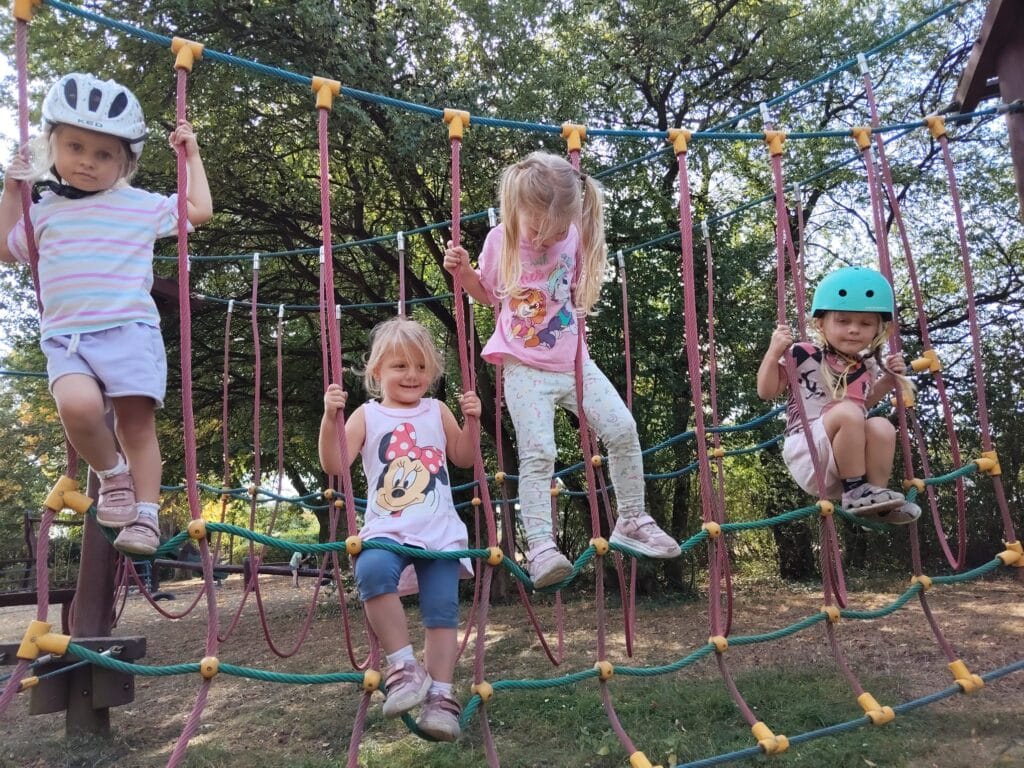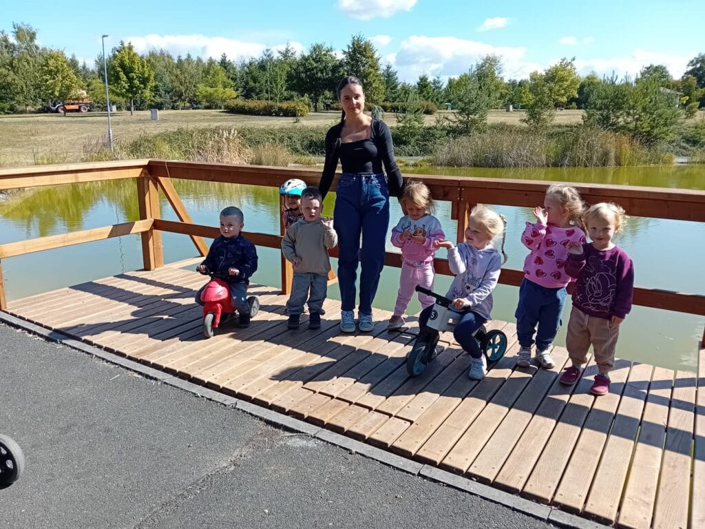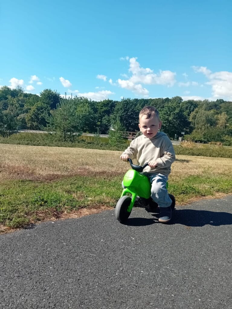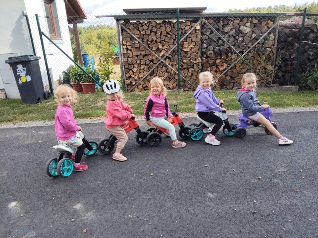 Díky pěknému počasí jsme byli déle venku. Střídáme dětské hřiště, jízdu na motorkách (starším dětem klidně doneste first bike, pokud na něm již umí), nebo výpravy do lesa.
