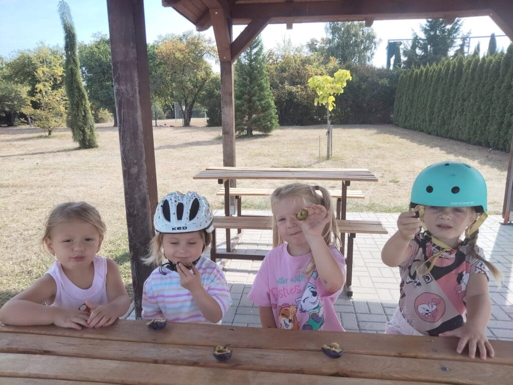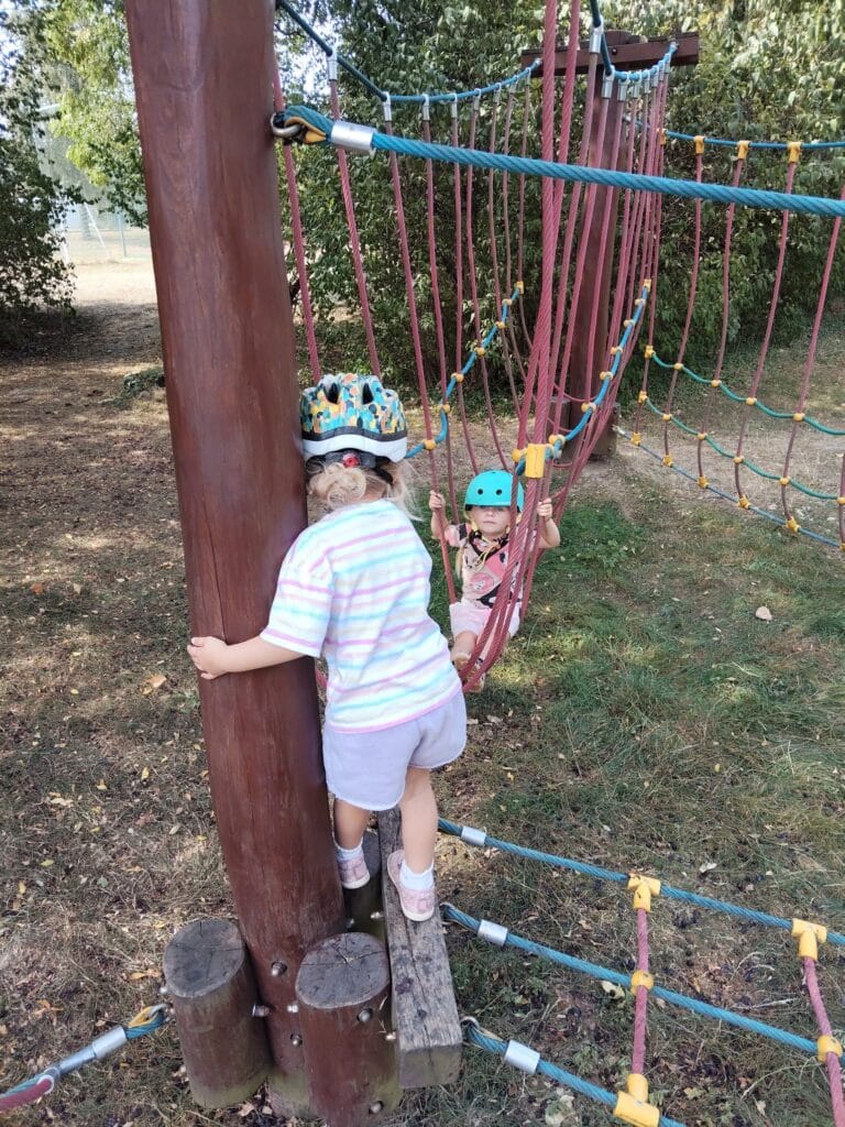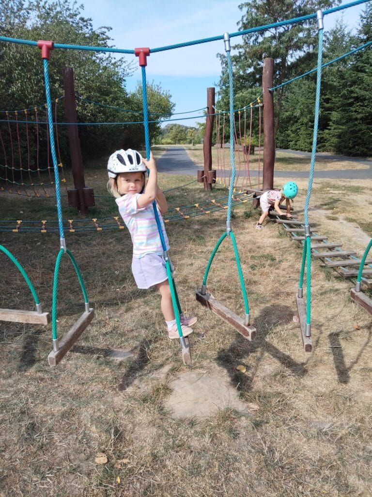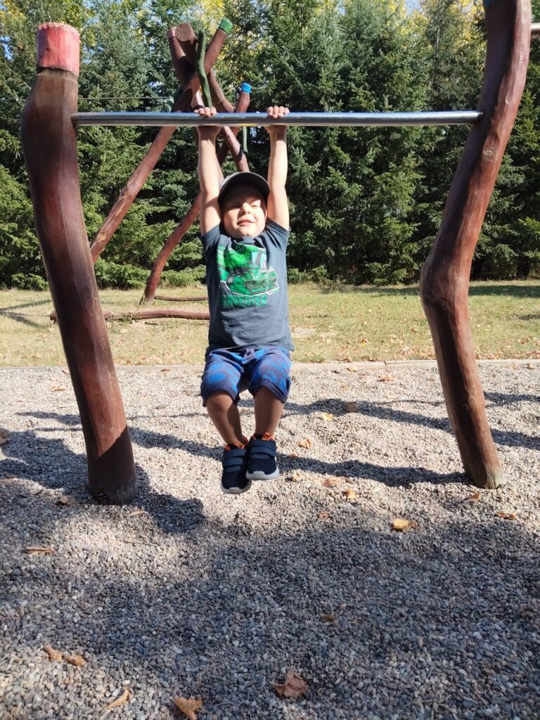 Díky pěknému počasí jsme byli déle venku. Střídáme dětské hřiště, jízdu na motorkách (starším dětem klidně doneste first bike, pokud na něm již umí), nebo výpravy do lesa.