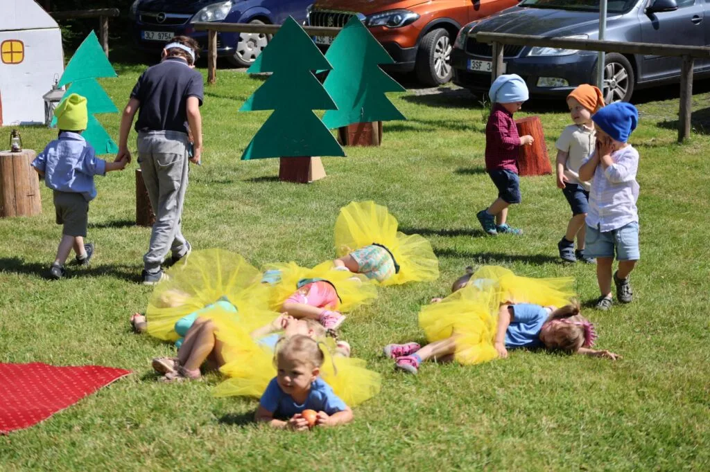 V pátek jsme ještě oslavili narozeniny naší milé Olivky a pak už jsme se přesunuli na hřiště, nachystat “scénu a výtvarnou galerii.” Při zkouškách bez publika jsme si byli ve svých výkonech všichni o trošku jistější, ale i tak věřím, že jste si vystoupení užili.
