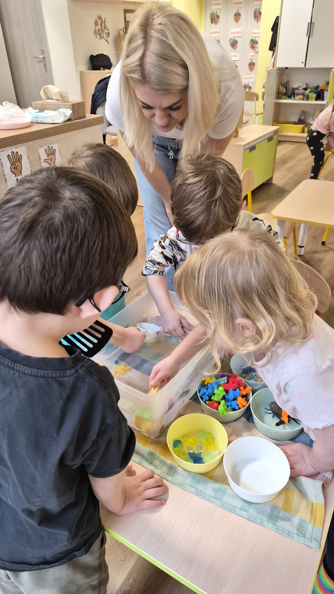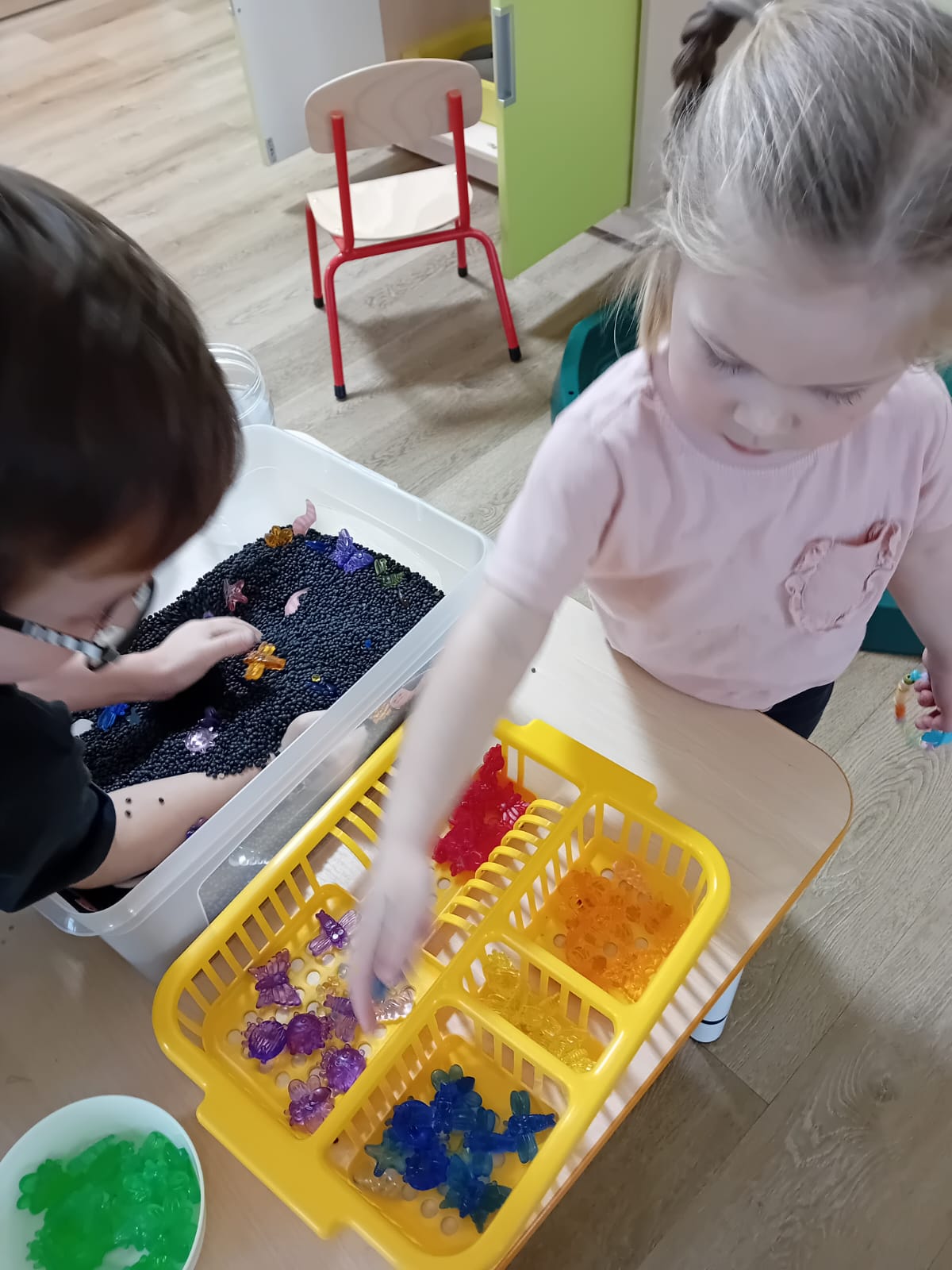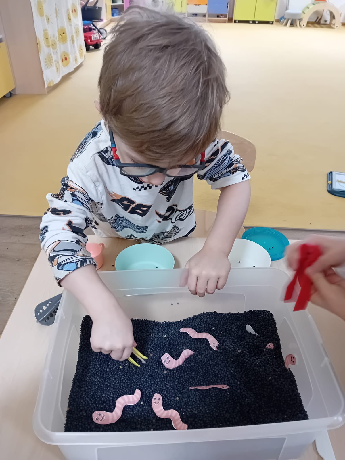 Špetkový úchop, který dětem napomáhá v přípravě na psaní, jsme tentokrát procvičovali s pinzetou a hravým hledáním a tříděním různých předmětů. Největší úspěch mělo nakonec lovení rybek ve vodě, protože tam, kde je voda, jsou vaše děti zkrátka nejvíc spoko 🙂