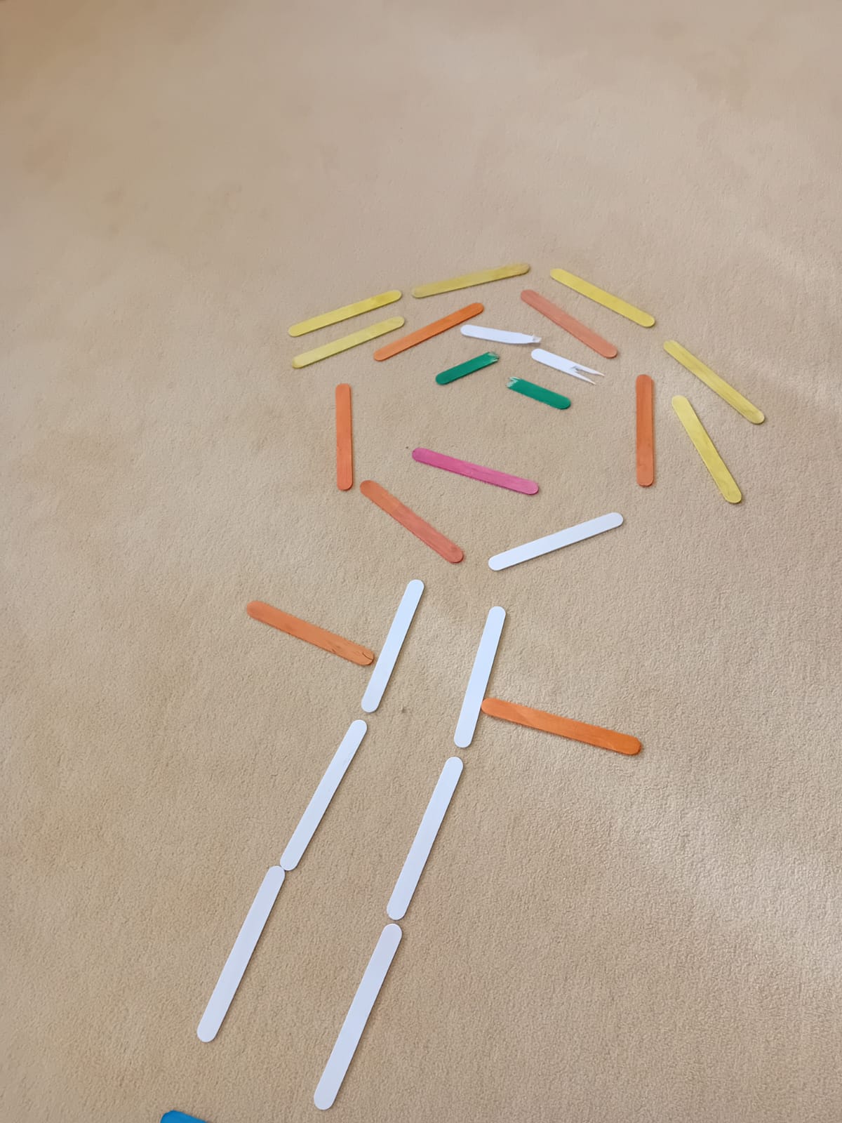 Každé ráno v kroužku po uvítací básničce upevňujeme číselnou řadu tím, že se děti střídají v počítání všech přítomných. Poté zkoušíme různé varianty, které prověří pohotovost a vnímání dětí, například spočítej jen kluky, nebo ty, co mají dnes krátký rukáv a podobně. Tento týden jsme počítali na prstech do deseti a následně jsme všechny prsty pojmenovali.