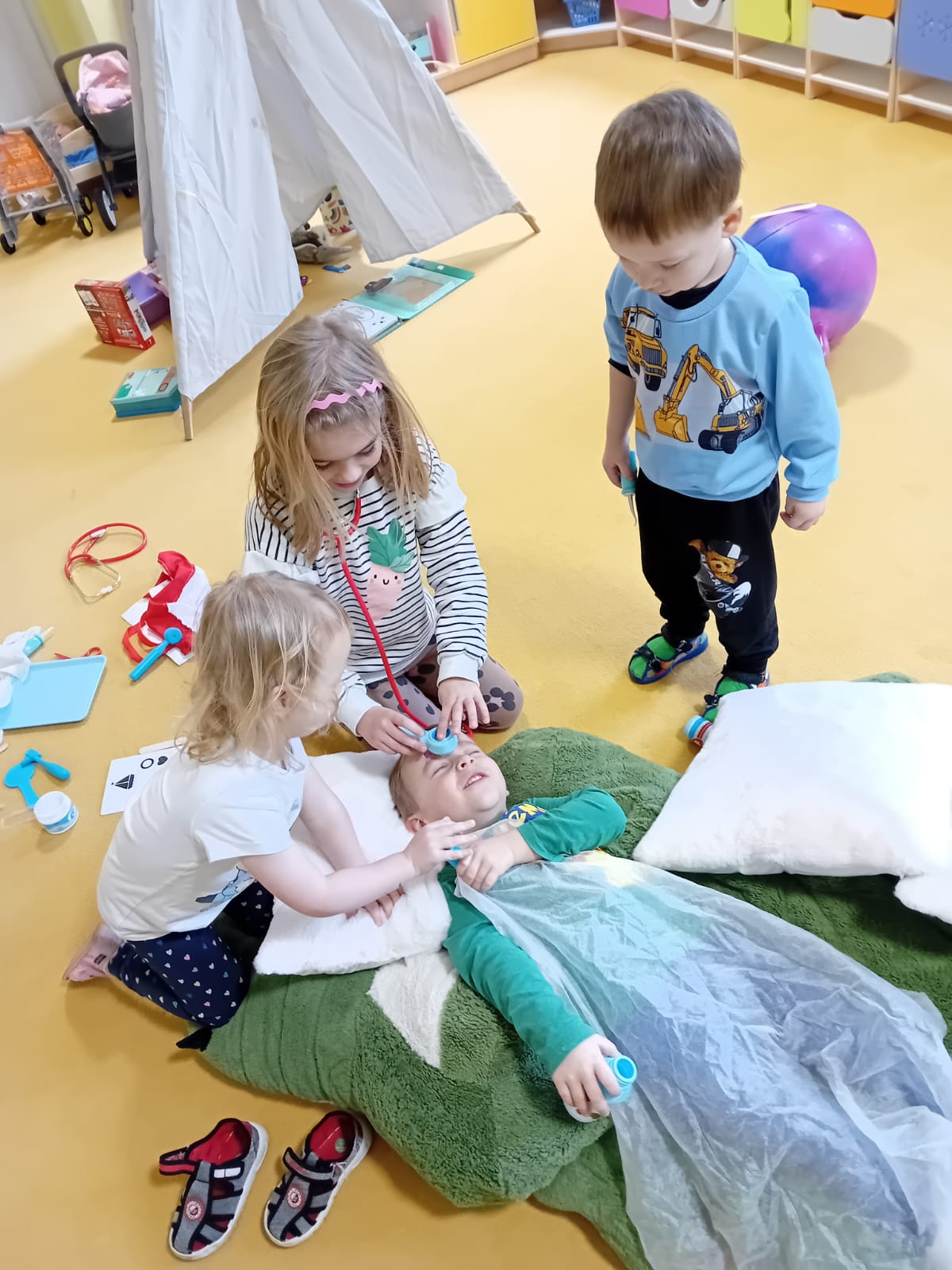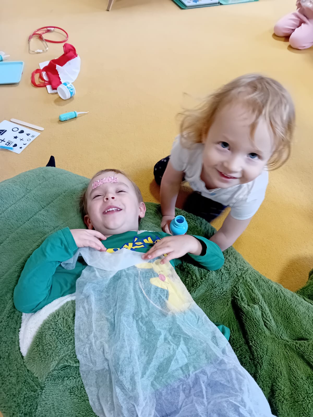 Z volné hry tentokrát dominovala hra na lékaře, protože dle slov Olí, na rodinu si hrajeme pořád 🙂