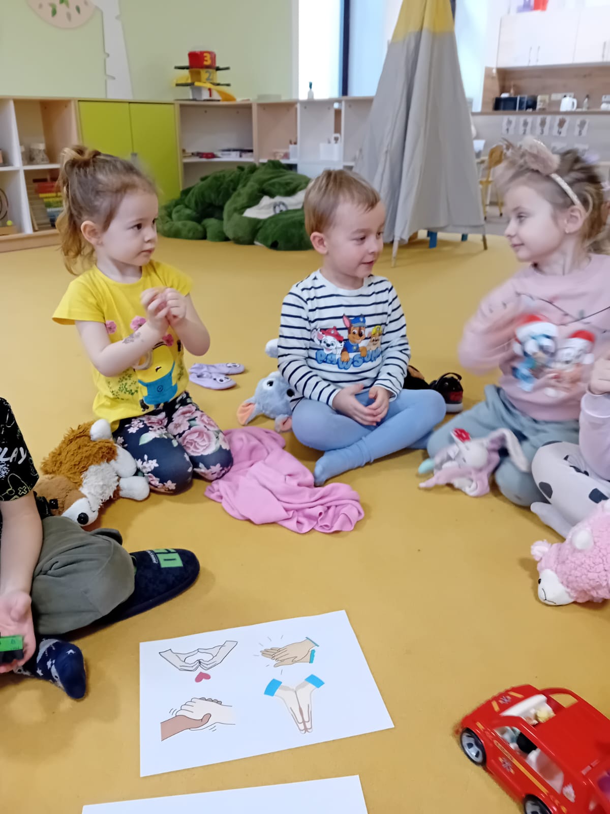 Dále jsme si vyzkoušeli a vysvětlili různá gesta, jejichž pomocí můžeme vyjádřit náš pocit nebo záměr. Nejvíce se dětem líbil malíčkový slib 🙂