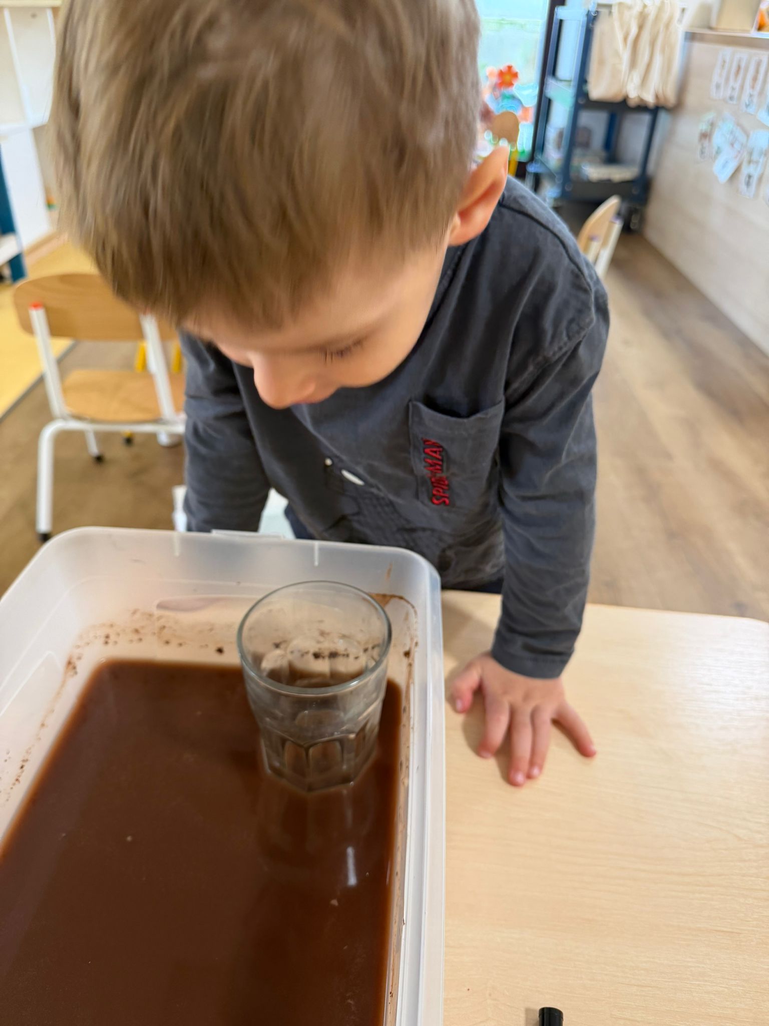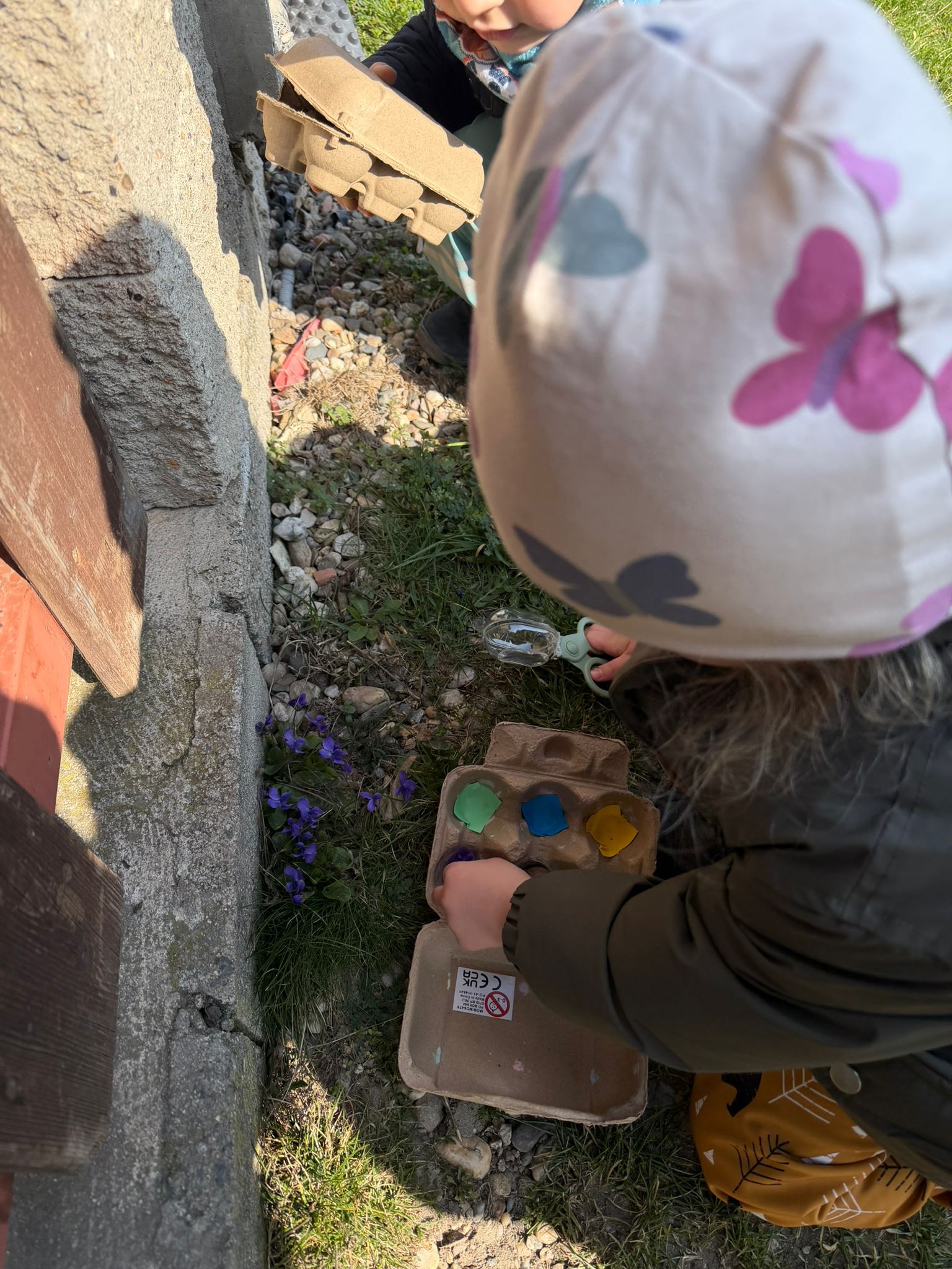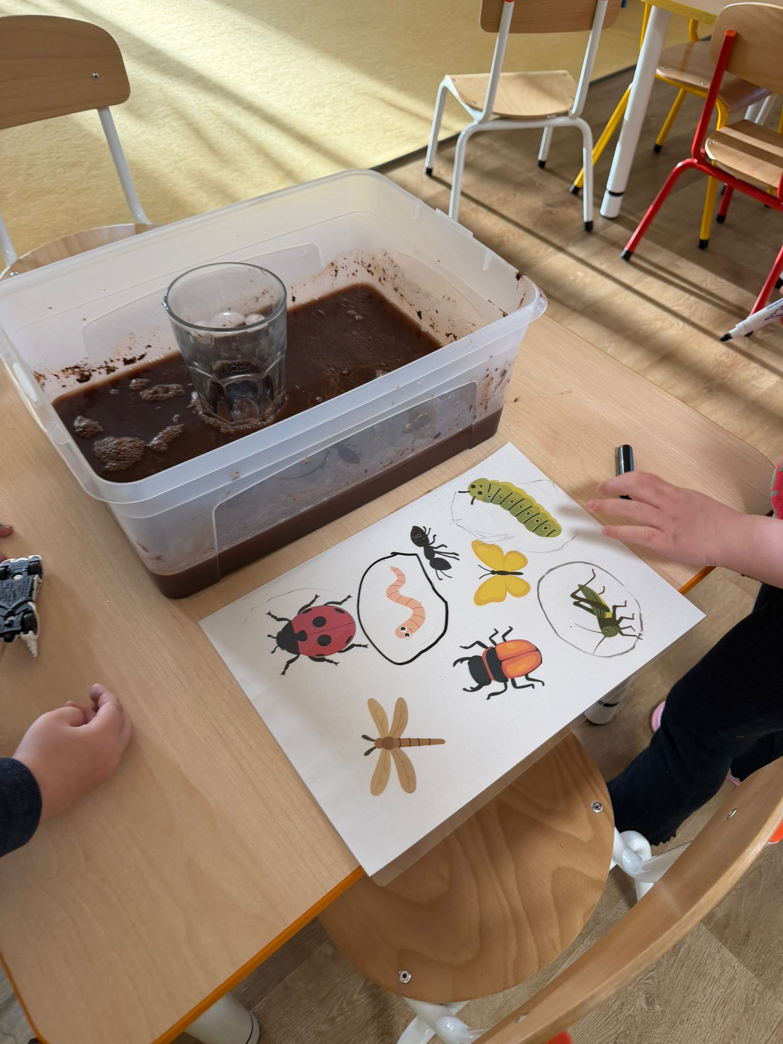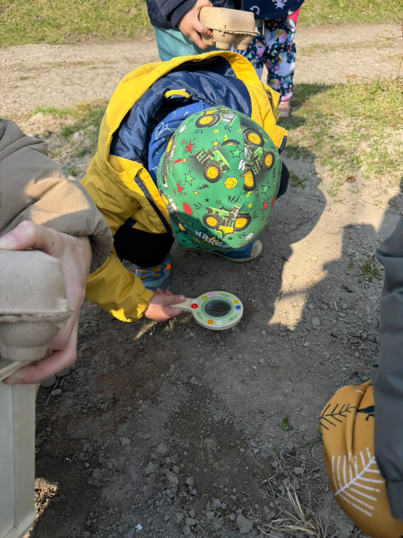 Zvídavost děti projevily při manipulaci s lupou, nebo hledání zvířátek schovaných v tmavé tekutině. Venku plnily úkoly a sbíraly přírodniny, které dělily podle barev.