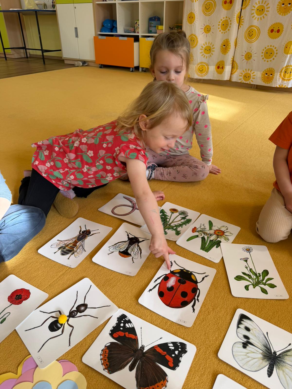 Při komunitním kruhu jsme si povídali o životním cyklu květin a hmyzu, které jsme pomocí demonstračních obrázků správně přiřazovali.